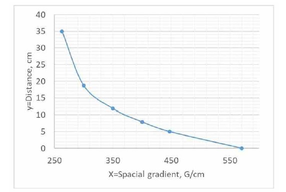 | Spatial Gradient (G/cm) | Distance D (cm) |