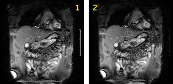 2Shimming prior to scanning. Notice the absence of the band-like artifact on the image.