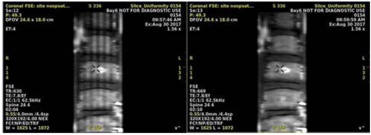 | Right | Image on the right is the reformat image with Slice Uniformity turned On. |