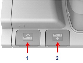 Figure 2. Table pedals: 1 = Up motion, 2 = Down motion
