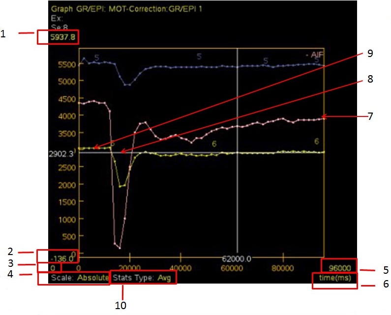 • The horizontal axis can represent either image numbers, image time in milliseconds, b–value, ppm, or frequency.