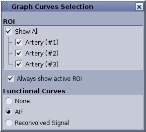 • You can change a graph view to display either a single ROI or multiple-ROIs. Right-click in a graph view and click Select displayed curves. Make a selection from the Graph Curves Selection menu.