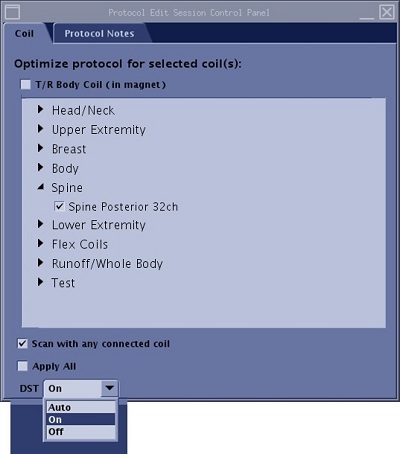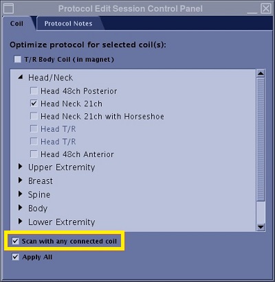 Scan with any connected coil protocol selection
