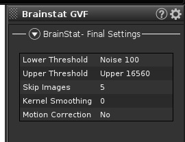 The BrainStat GVF screen displays when a time-course series is selected from the Worklist Browser, READY View is launched, and a BrainStat GVF protocol is selected.