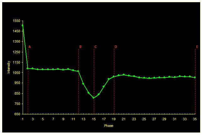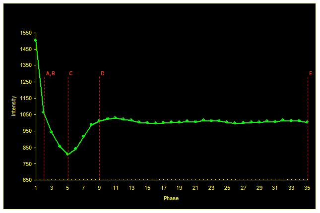 - E = end of acquisition should be greater than C + 3 washin phases [3 x (C-B)].