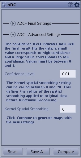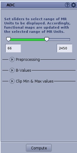 If a single series is selected then the ADC screen heading display as ADC. If the maximum of 2 DWI series are selected, then the heading changes to ADC2.