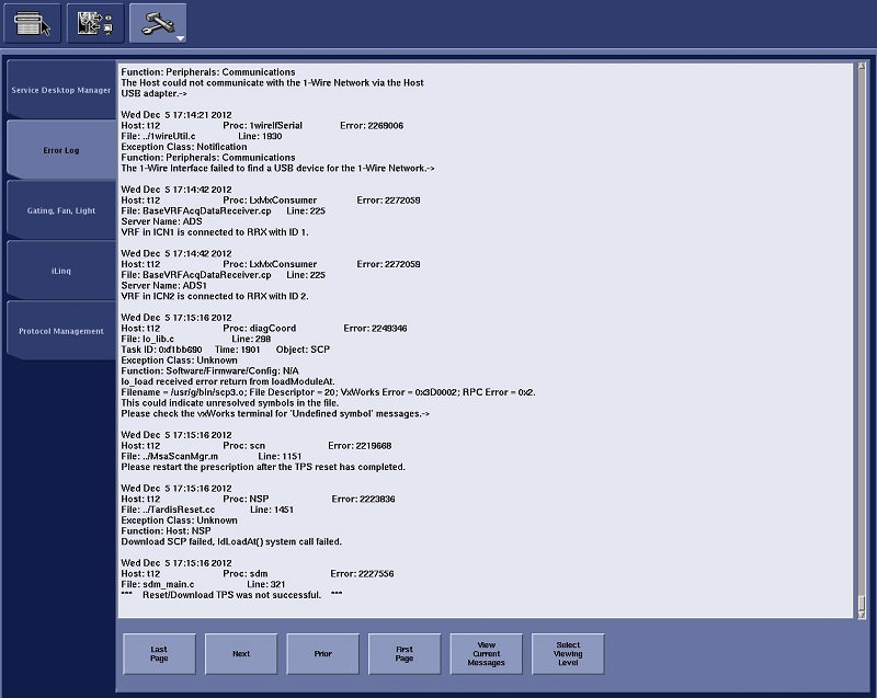 When you view the Error Log, you will most likely see many more messages than have been displayed during a scan or review session. This is because not every message that is written to the Error Log is one you will see. Your service engineer may look here to see the types of messages and the time messages were posted.