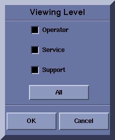 | Viewing level | Select Viewing Level to choose any combination of Operator, Service and Support, or all three levels.