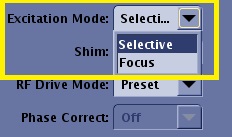 Use Selective for routine scanning, which uses a selective excitation RF pulse. If Non-Selective and Focus are unavailable, the menu only displays a grayed-out Selective.