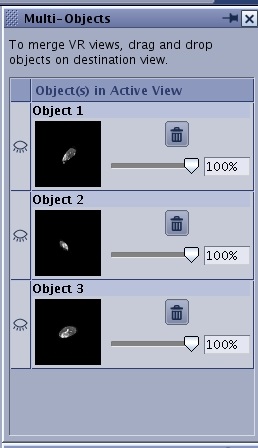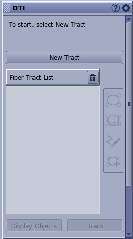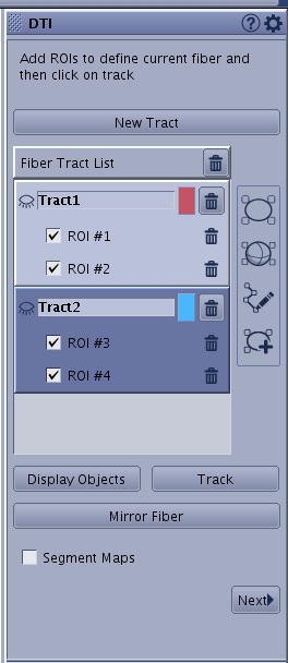 - Display Object is a list of fiber track objects. An open eye displays the object on the fiber track viewport and a closed eye hides the object on the fiber track viewport. The objects can be the orthogonal planes, a volume rendered 3D head, a 2D anatomical image, individual fiber tracks, etc.