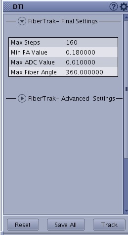 - Min FA: the anisotropy threshold below which the fiber computation will not occur.