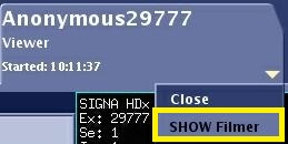 - From any Session tab (with the exception of Protocol session), click SHOW Filmer from the drop down menu.