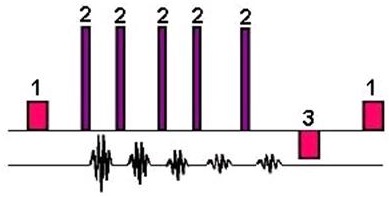 The basis of an FRFSE sequence is that the transverse magnetization is still present at the end of the echo train. The magnetization is refocused back into the longitudinal axis by applying a -90° pulse, during the time when normal refocusing is occurring.