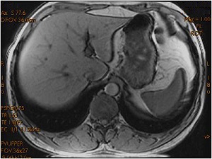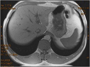 Boundaries between fat and tissues with much water are either bright or dark. For some PSDs, such as FSPGR, the TE can be selected as In Phase or Out of Phase. When In Phase is selected, the fat/water border is bright and when Out of Phase is selected, the fat/water boundary is dark and structures can appear as if they have been outlined with a black marker.