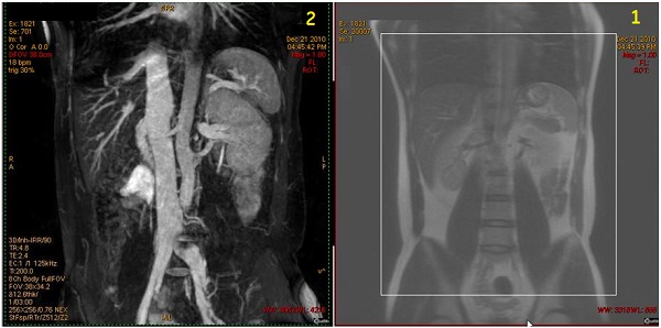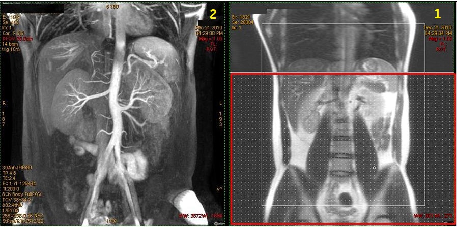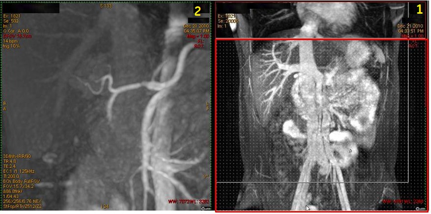 2Resultant Inhance Inflow IR coronal image of renal artery .