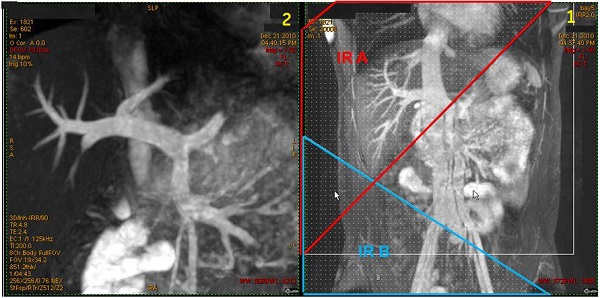 2Resultant Inhance Inflow IR magnified coronal image of portal vein.