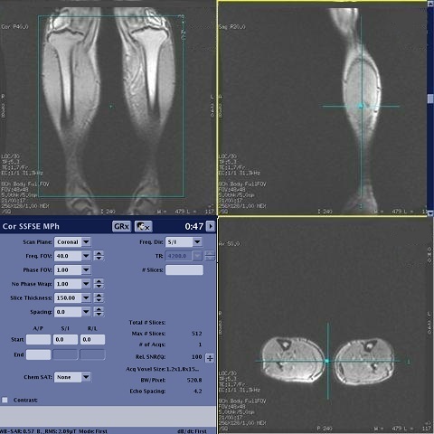 - Graphically prescribe a single coronal slab over anatomy of interest. Cover the entire anatomy to avoid phase wrap artifact.