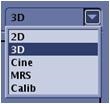 The Imaging Mode defines the image format and type of image information to be gathered. The Mode text box has predefined values to select 2D, 3D, Cine, Calib, or MR Spectroscopy.