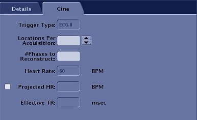 Cine mode is an optional software package that lets you generate images for dynamic views of anatomy such as the heart. This option employs retrospective gating techniques. It is compatible with Vascular and Gradient Echo family pulse sequences.