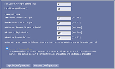 In the password area in the Local User tab, there are minimum and advanced password rules. These rules are a subset of the recommended rules listed above.