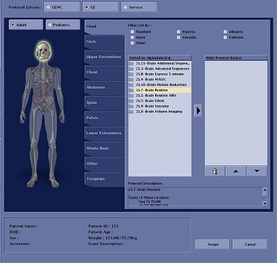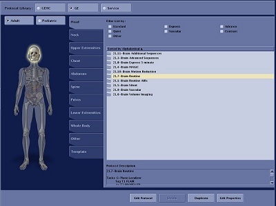 A protocol is a group of series that have pre-programmed scan parameters used for imaging a particular part of the body. Modifying a protocol allows you to make changes to existing protocols. You can make the modifications without modifying the original or create a whole new protocol using an existing protocol as a base.