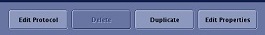 | Click Edit Protocol to open a Protocol Edit session. All the series in the selected protocol appear in the Workflow Manager and a Protocol Notes screen displays. Click Delete to remove protocols from the Site or Service library. This button is not available for protocols within the GE library. Click Duplicate to copy an existing protocol and modify the protocol properties. You can then edit the protocol. This is particularly useful when you want to change a few scan parameters from an existing protocol and then give the protocol a new name. For example, if you have a T2 FSE head protocol and you want to create a new PD FSE head protocol with all the same parameters except TE, ETL, and TR, then duplicate the T2 FSE protocol, edit and save the protocol properties and then Edit Protocol. Click Edit Properties to display the Protocol Properties screen. |