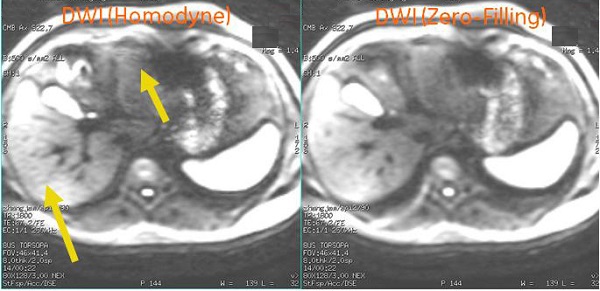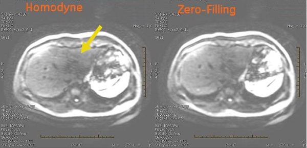 - Set Recon Type = 0 and a zero-filled reconstruction technique is used. It significantly reduces streak (worm-hole) artifacts particularly in images with low SNR and motion. The trade-off for reduced artifact is slightly lower resolution or blurred images in comparison with Homodyne reconstruction.