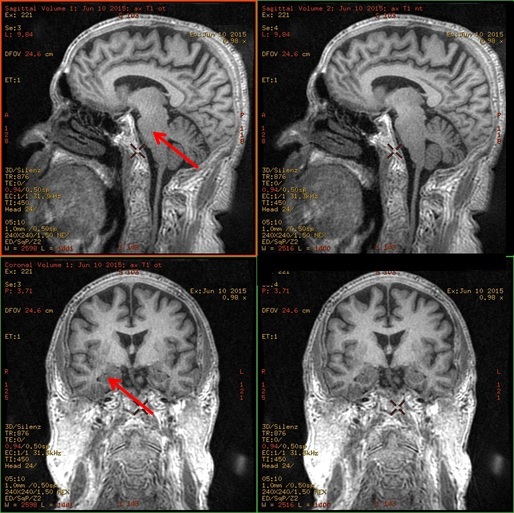 | Right | Sagittal scans reformatted into sagittal and coronal images. Note the reduced streaking artifact. |