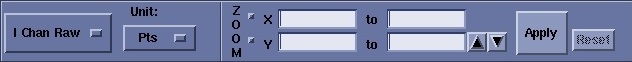 • Zoom: The entries and selections in the zoom control area allow you to zoom along the horizontal (x) and vertical (y) axes.