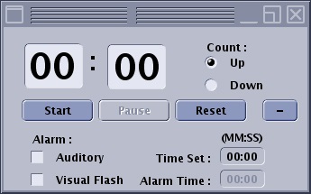 | Start | Start begins the count up or down of the time that is entered in the minute and seconds text fields. If no time is set, it counts up in a free running mode. |