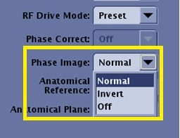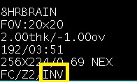 - When Invert is selected from the Phase Image menu on the Details tab, the phase images have the annotation “INV” in the bottom left corner of the image.