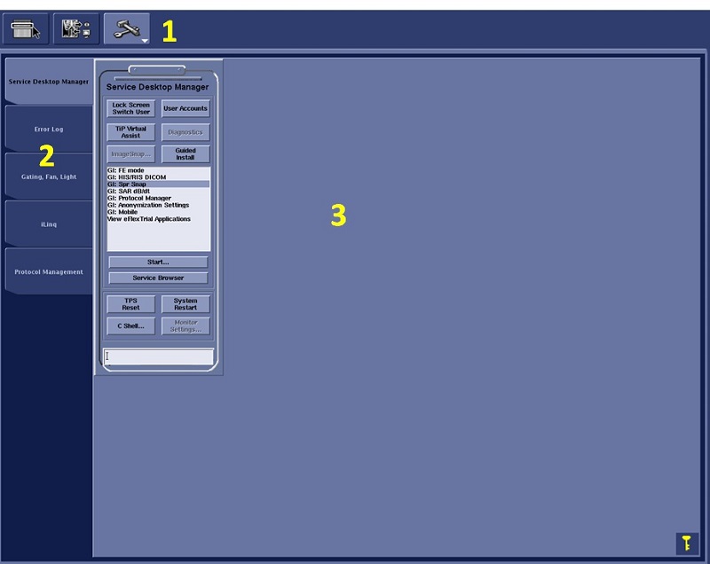 The System Management work area allows you to access the Service Desktop Manager, Error Log, Gating, fan and light control, iLINQ, System Preferences, e-Report, etc. You can perform planned maintenance and software performance tests, save raw data, change the system date and time, reorganize protocols, or connect to TiP Virtual Assist from these areas.