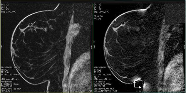 VIBRANT (Volume Imaging for BReast AssessmeNT) with Flex Imaging Option is a single slab 3D, dual echo, Fast SPGR application that acquires out-of-phase and in-phase echoes used to generate fat and water images using a two-point Dixon technique. The VIBRANT with Flex is compatible with Breast coils and can be used for either bilateral or unilateral breast imaging.