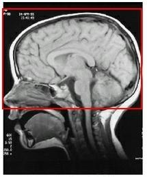 2Head is tilted towards the left. Note the uneven contrast between the right and left hemispheres.