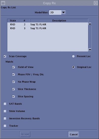 - From the Copy Rx screen, click All as the Mode Filter to view both 2D and 3D available series.