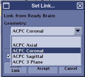 • If you create a link from Ready Brain to a 3-plane localizer, then the only supported Geometry is 3-Plane.