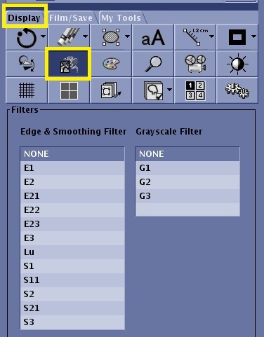 Use these steps to apply a Filter in the Viewer to enhance edges or lungs or smooth images. Use the Gray Scale tool to increase the image contrast so that the image has a more black and white appearance.