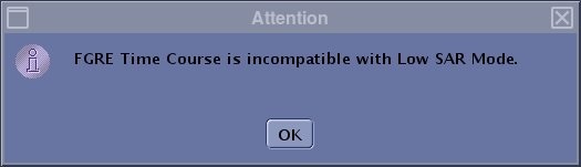 Figure 1. Time Course FGRE message: FGRE Time Course is incompatible with Low SAR Mode