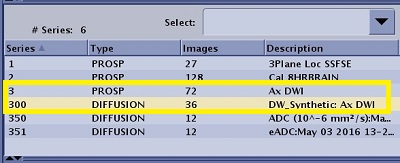 The MAGiC DWI series number is the original series # x 100. Figure 1. Patient List with DWI source prospective series selected