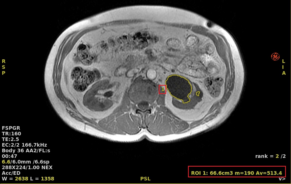 Define a diameter on the structure (drag and drop) on any plane (axial, coronal, sagittal, oblique).