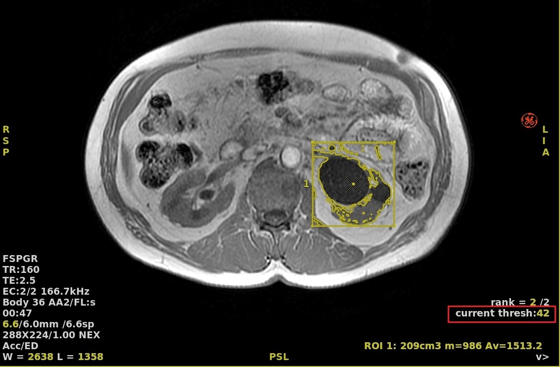 From the Auto Contour screen, click the Threshold option box and place the cursor in the center of the area of interest and left-click.