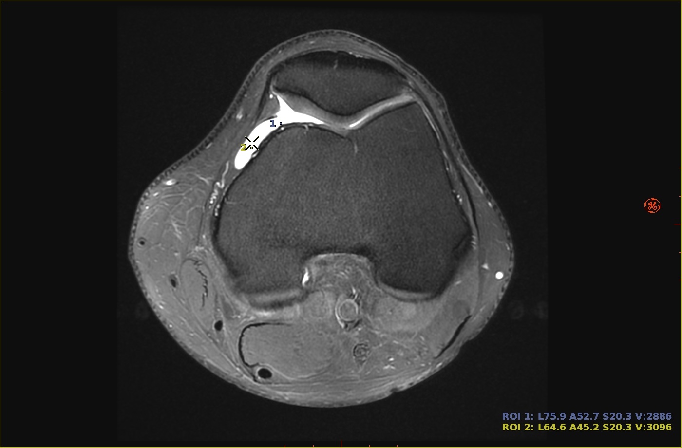 The cursor anatomical location and signal intensity are displayed and connected to the location via a dotted line only if Float Stats attached to ROI is selected from the Preferences screen.