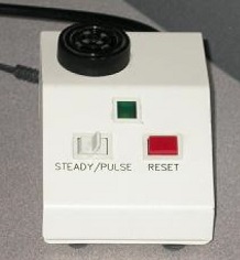 Squeezing the Patient Alert bulb causes the control box to light up and emit an audible signal. A switch on the control box allows you to set the signal for intermittent or constant light and sound.