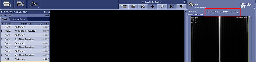 - The SAR Scout series number begins with 29000. It is visible in the Auto View window during SAR scout scans. The system displays the localizer scan series in the Task tab, but it does not display the SAR Scout series.