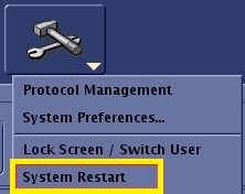 5. From the header area of the screen, click the Tools icon arrow and select System Restart.