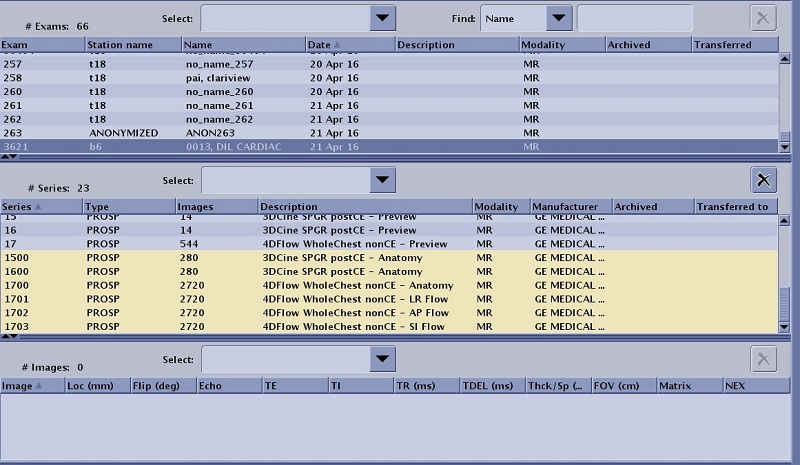 2. Select the exam or series you want to transfer that has 4DFLOW data sets.