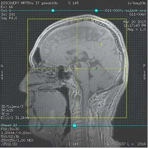 A scan session is open, a Silenz MRA protocol is selected and the Silent MRA series is in the INRX state.