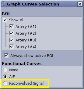 - From the Graph Curves Selection screen, click the Reconvolved Signal option button, which displays either a T1 or a T2* effect graph and map.
