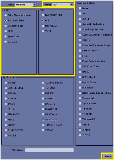 6. From the PSD/Imaging Options/Applications screen, complete the following.