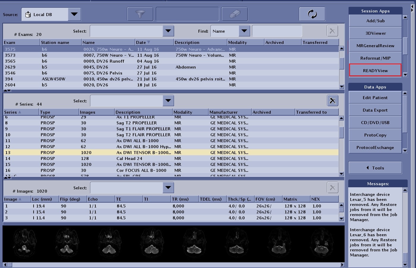 - From the Patient List, select an exam that has multiple data sets you want to merge.